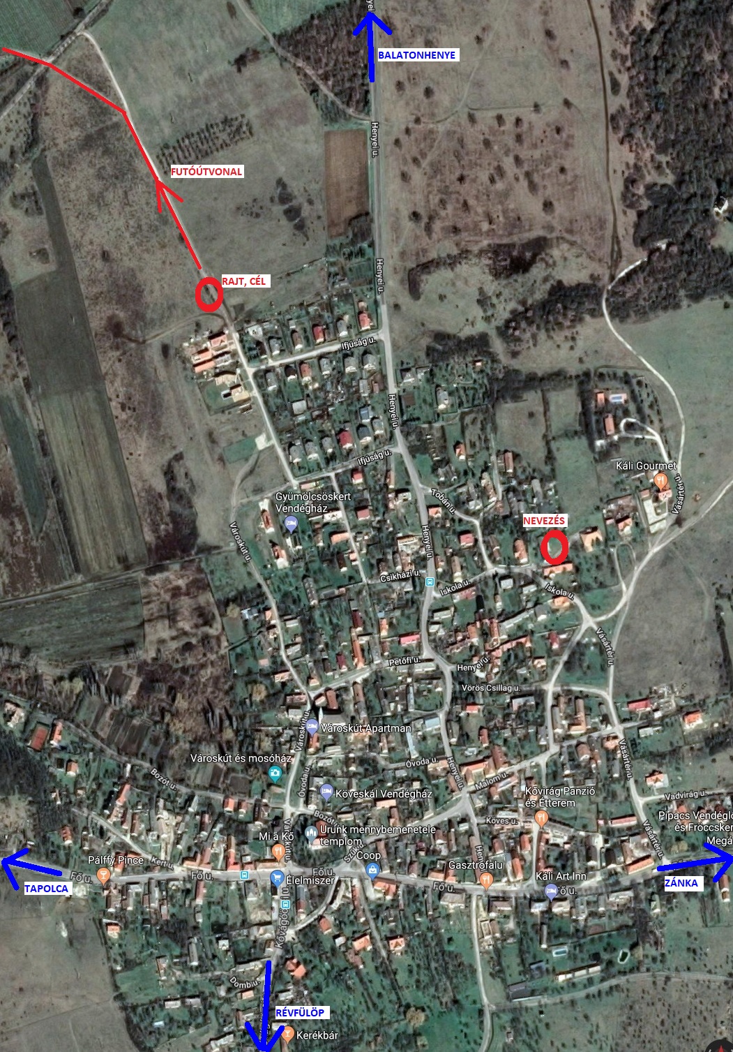 Nevezés: 14:00 - 15:30 Rövid táv: 5.3 km + 200 m szint Rajt:16:00 Hosszú táv: 15.7 km + 400 m szint Rajt:17:00 Eredményhirdetés és sorsolás: 19:00 2018. július 1. vasárnap Térkép (ÚJ HELYSZÍN !!!) Nevezés: 8:00 - 9:00 Rövid táv: 5.3 km + 200 m szint Rajt: 9:30 Hosszú táv: 15.7 km + 400 m szint Rajt: 10:30 Ovis futás: 200 m Rajt: 12:15 Eredményhirdetés és sorsolás: 12:30 Előnevezés lezárva Akik előneveztek (Helyszíni nevezéssel csak 30 indulót fogadunk) Szállás Ha érdekel szállás lehetőség a versenyközpontban, írj emailt a futapestklub@gmail.com emailcímre. Versenyközpont: Köveskál, Iskola utca 5., Turistaszállás (régi iskola) GPS 46.8847, 17.6083 Korcsoportok (női és férfi): 5 km: 6-10, 11-14, 15-19, 20-29, 30-39, 40-49, 50-59, 60-69, 70-79, 80-99 év 16 km: 11-19, 20-29, 30-39, 40-49, 50-59, 60-69, 70-79, 80-99 év 42 km: 11-19, 20-29, 30-39, 40-49, 50-59, 60-69, 70-79, 80-99 év Értékelés: A 4 futam külön-külön, plusz aki mind a 42 kilométert teljesítette A Futapest éves pontversenybe csak 1 eredmény számít bele, az ahol a legtöbb pontot szerezted. Mindenki kap befutóérmet, az abszolút győztesek kupát, a korcsoportos dobogósok érmet kapnak. Nevezési díjak 1 távra: Előnevezéssel június 28-ig 1800,- Ft Kedvezmények: Nyugdíjasoknak, Spuri Aranykártyával és Magyar Turista kártyával 1500,- Ft, Diákoknak, köveskáli felnőtteknek és fogyatékkal élőknek 900,- Ft, családi kedvezmény a 3-ik főtől 50% Köveskáli diákoknak és Futapest klubtagoknak ingyenes Helyszíni nevezés: diák: 1300,- Ft felnőtt: 3000,- Ft nyugdíjas: 2500,- Ft Nevezési díjak több távra: A 2-ik és a 3-ik távra féláron lehet nevezni, a 4-ik táv ingyenes Futapest klubtagoknak 1 teljes nevezési díjat kell fizetni, ha 2, 3 vagy 4 távon indulnak Pálya: Sok földút, kevés makadámút; Frissítőállomás 4.5, 9 és 13.5 km-nél Megközelítés autóval: GPS 46.8847, 17.6083 Vonattal, busszal: