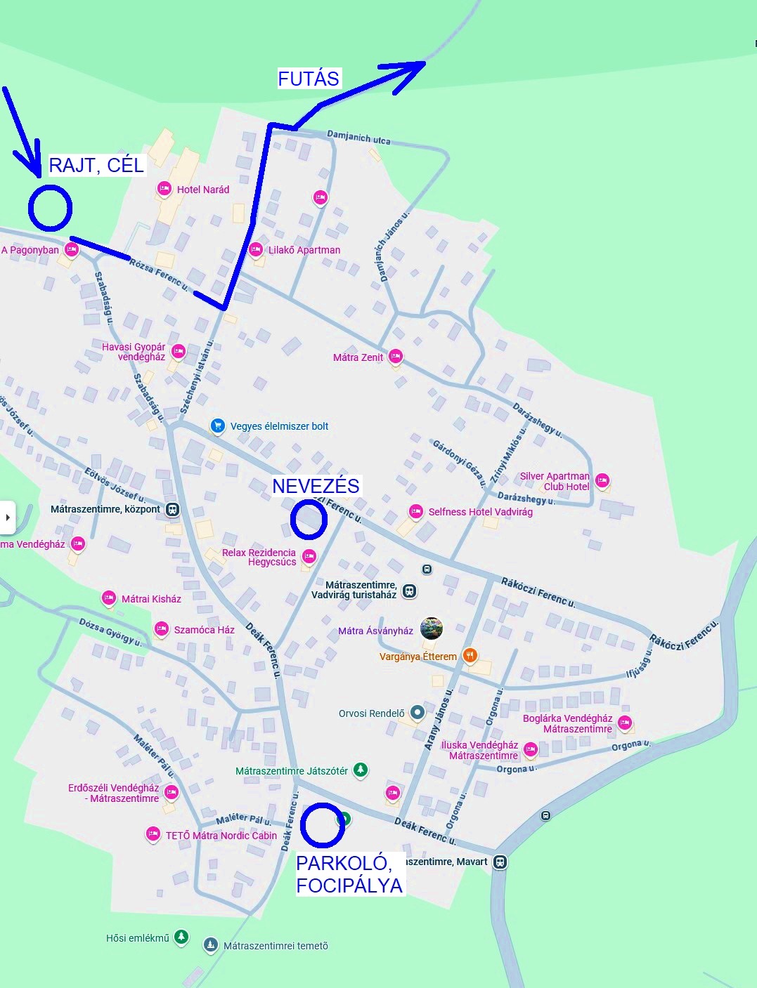 Mátraszentimrei félmaraton 2026. június 28. szombat Félmaraton: 20 km + 620 m szint Rajt:10:30 Közép táv: 7.0 km + 250 m szint Rajt:11:00 Rövid táv: 3.2 km + 150 m szint Rajt:11:10 Gyerek futam: 300 m Rajt:13:00 A 20 km és a 7 km is a hosszú távú pontversenybe számít bele. Rajtszám átvétel: 9:00 óra - 10:30 óra Eredményhirdetés és sorsolás: 13:30 Versenyközpont: Mátraszentimre, Zakupszky László Általános Iskola, Rákóczi utca 14. GPS 47.9089, 19.8788 Korcsoportok (női és férfi): 20 km: 15-19, 20-29, 30-39, 40-49, 50-59, 60-69, 70-79 év 7 km: 15-19, 20-29, 30-39, 40-49, 50-59, 60-69, 70-79 év 3 km: 8-10, 11-14, 15-19, 20-29, 30-39, 40-49, 50-59, 60-69, 70-79, 80-99 év 300 m: 4-6, 7-8, 9-10, 11-13 év Előnevezés június 8-tól Nevezési díj előnevezéssel: 5.000,- Ft Gyerekfutam: 1.000,- Ft Kedvezmények: Nyugdíjasoknak 3.500,- Ft, Diákoknak 26 éves korig és fogyatékkal élőknek 2.500,- Ft, Mátraszentimrei lakosoknak és Futapest klubtagoknak ingyenes családi kedvezmény a 3-ik főtől 50% Helyszíni nevezés mindenkinek 8.000,- Ft! Fizetni lehet a helyszínen készpénzben, vagy átutalással a 11600006-00000000-60043782 számlaszámra a számlázási cím megadásával. Ha átutalással fizetsz, feltétlenül írd be a közlemény rovatba a számlázási címet, és csak akkor utalj, ha már neveztél és ha biztosan eljössz! Pálya: földút Megközelítés autóval: GPS 47.9089, 19.8788 Autóbusszal: Budapest Stadion 7:15 - Gyöngyös 8:25, átszállás, 8:40 - Mátraszentimre központ 9:58 Parkolás Támogatók: Mátraszentimre község Önkormányzata A változtatás jogát fenntartjuk. |